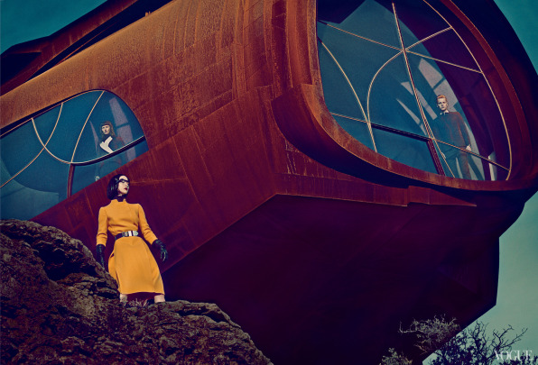 If you want to know how Vogue really sees Glass, take a closer look at that the mise en scène called “The Final Frontier.” Glass doesn’t live in a world of rolling meadows, crashing waves, Elizabethan furniture, or any other ethereally romantic creation of Grace Coddington. Glass was placed into a dystopian future, some planet from the original Star Trek that’s devoid of life save for a solitary, soul-sucking alien and a model in a Bottega Veneta wool-cashmere coat ($2,750). (Call that coat “saffron,” but any way you gussy up the hue, that’s Captain Kirk’s color through and through.) Even in Vogue’s brashest issue of the year, Glass can only exist as geek-wear.