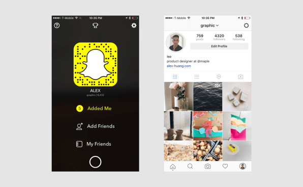 This speaks to a fundamental difference that’s always existed between the two platforms. In Snapchat, the only number associated with your account is your Snapscore, which lives on your profile page and is the product of an opaque scoring system many users don’t understand. Instagram, on the contrary, is all about clear, very public tallies: number of posts, number of users following you, number of users you follow, number of likes per post–these figures are hard to ignore because Instagram doesn’t want you to ignore them.